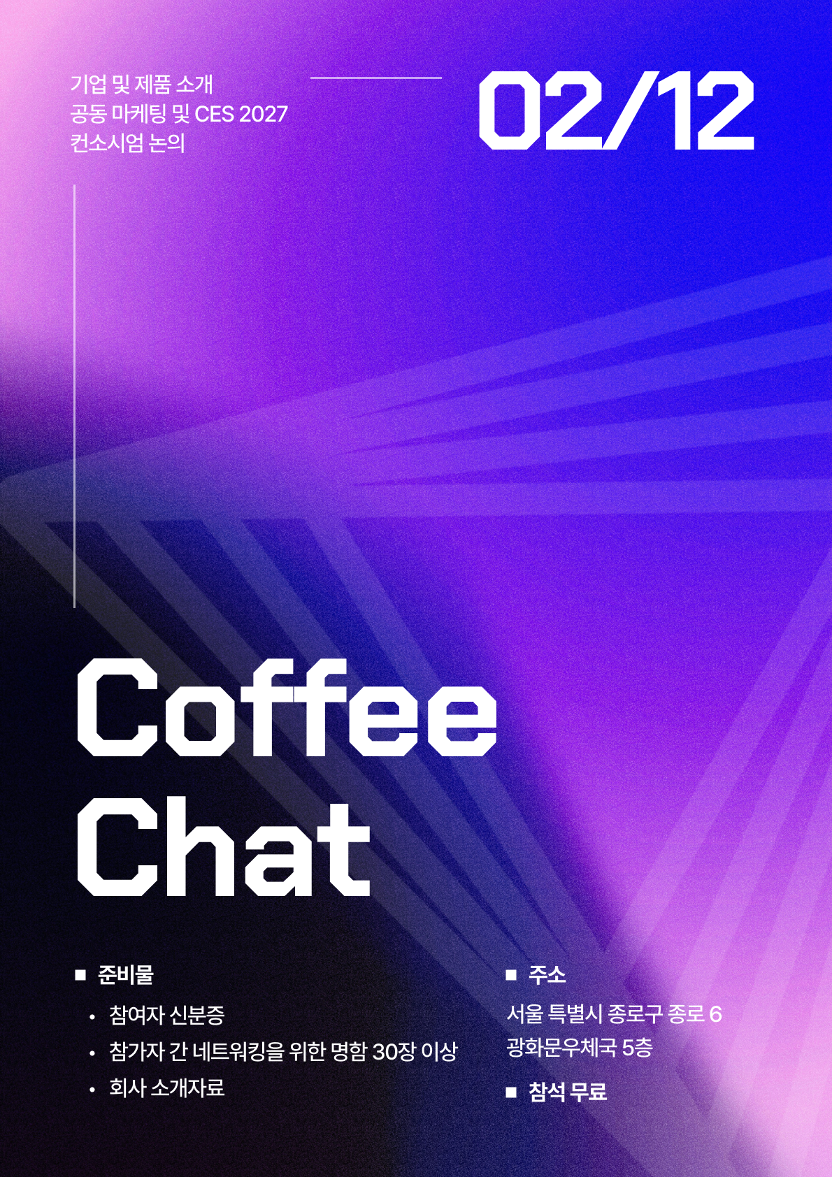 저희가 CES 2026 현장에서 직접 확보한 글로벌 리드 1,000개와 생생한 실전 인사이트를 나누고, 함께 비즈니스 기회를 만들어나갈 동료를 찾는 커피챗을 진행합니다!