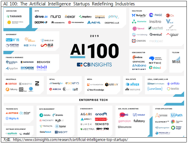 세계 디지털 플랫폼 시장을 주도하는 미국의 5대 IT기업(FAMGA; Facebook, Apple, MS, Google, Amazon)은 AI 스타트업 인수를 매우 활발히 추진하고 있다. FAMGA는 스타트업 인수 등을 통해 세계 인공지능 시장에서 높은 경쟁력을 갖춘 강력한 글로벌 기업으로 거듭 나고 있다.