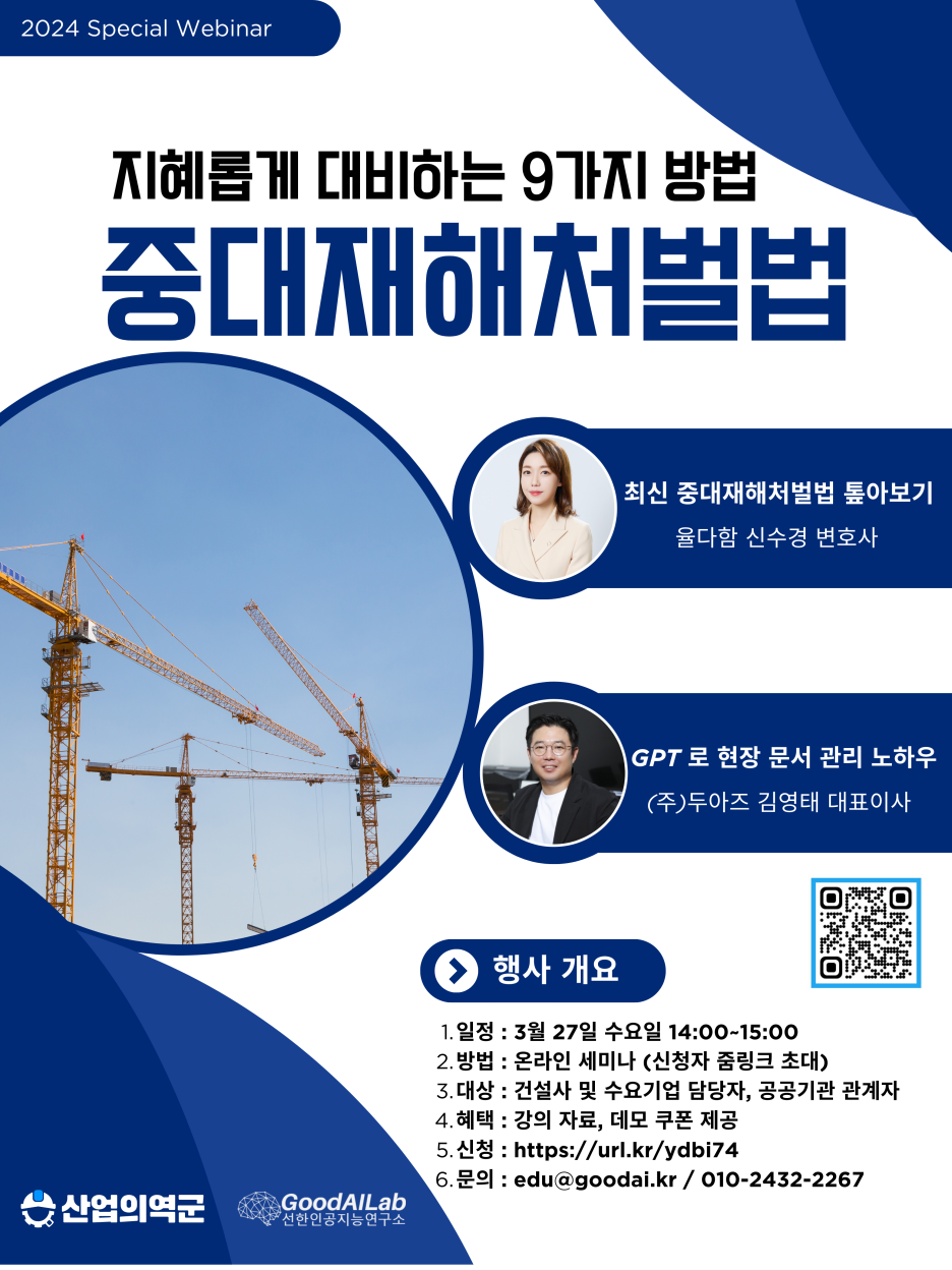 최근 이슈가 되고 있는 중대재해처벌법 관련 웨비나가 준비되어 있습니다.